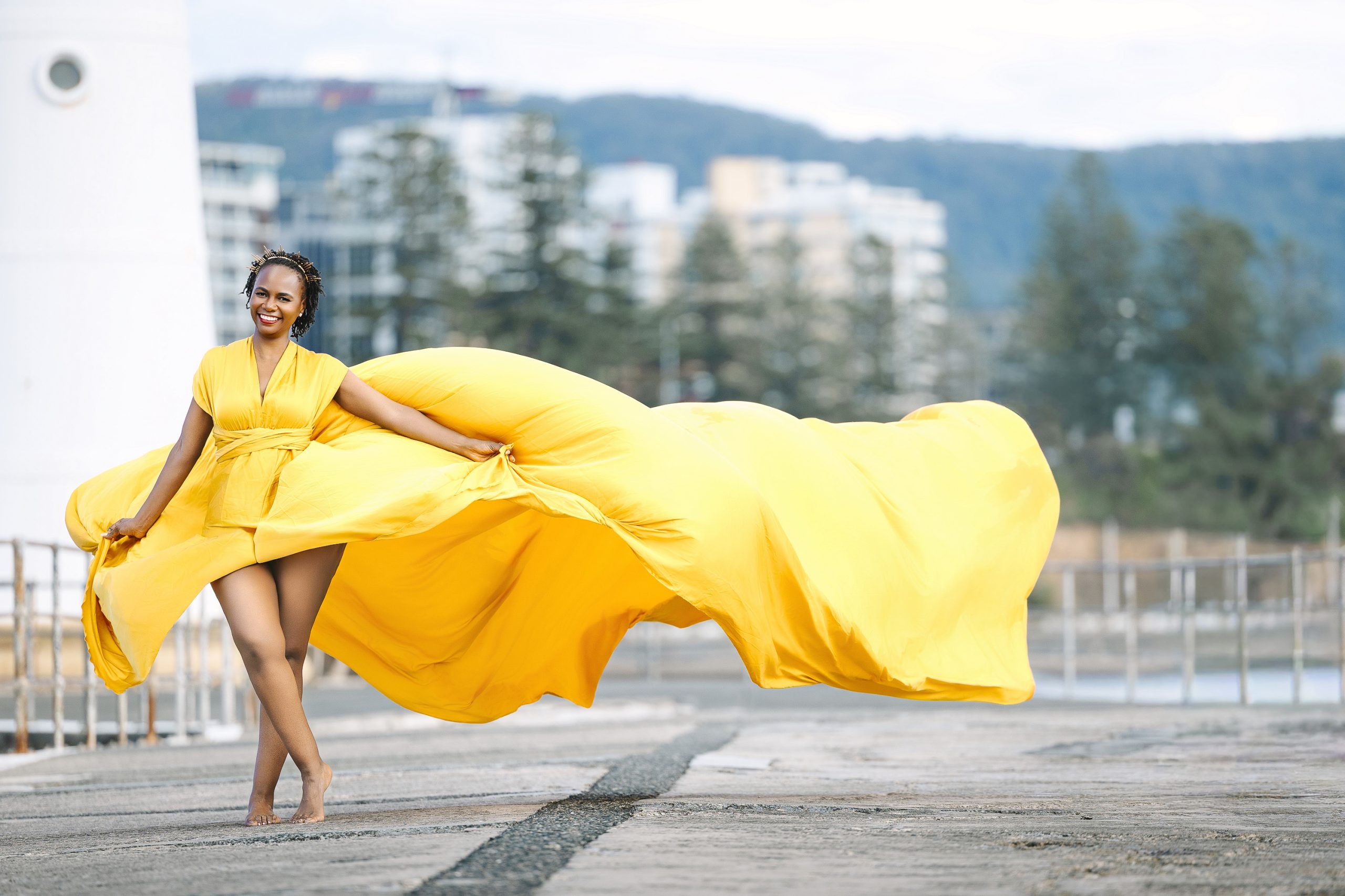 Experience the magic of a Flying Dress Photoshoot in Wollongong.