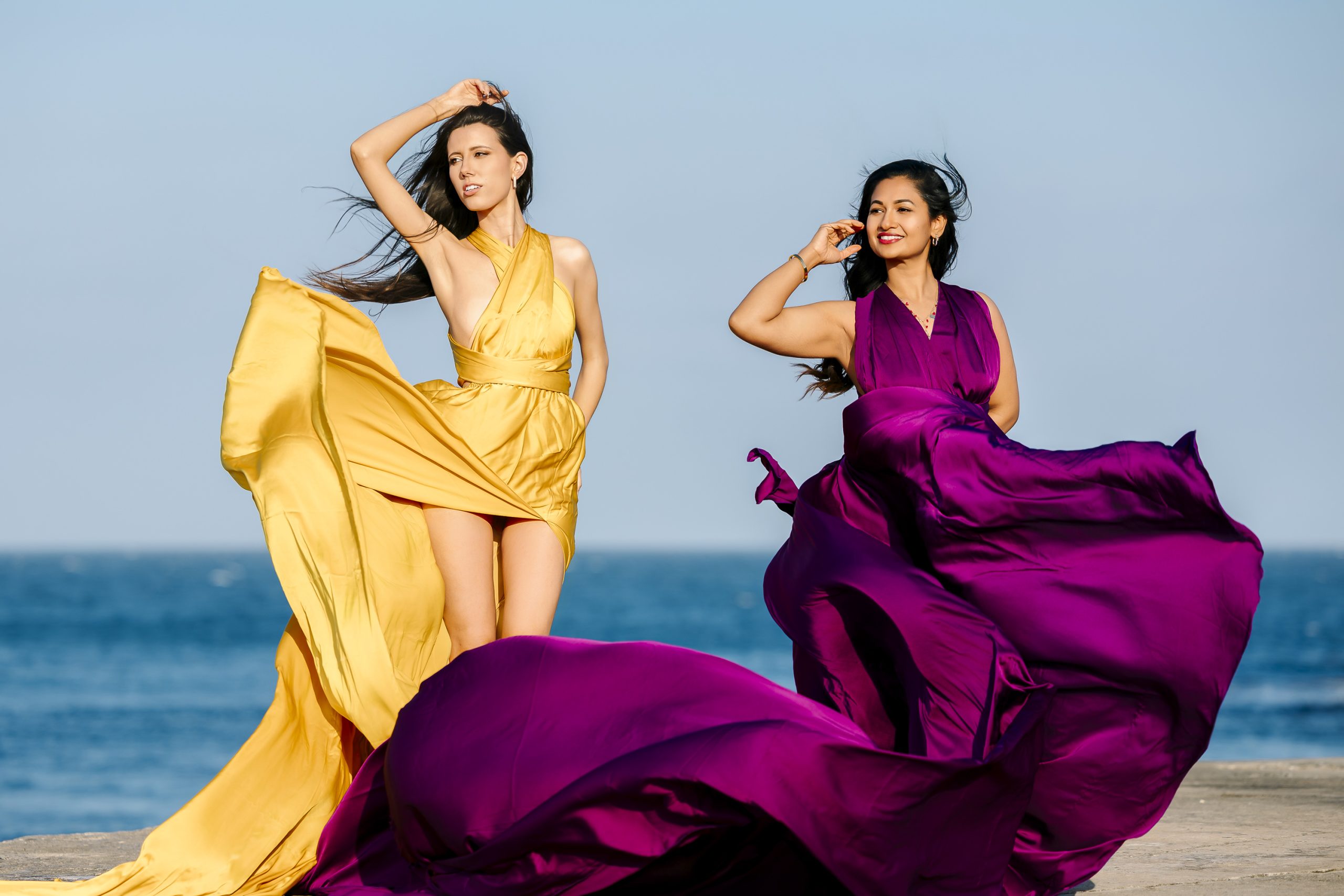 Being female photographers, we know how to make you feel comfortable and more natural in front of the camera. In most cases we will both be at your shoot, one photographing and the other throwing the dress for you!