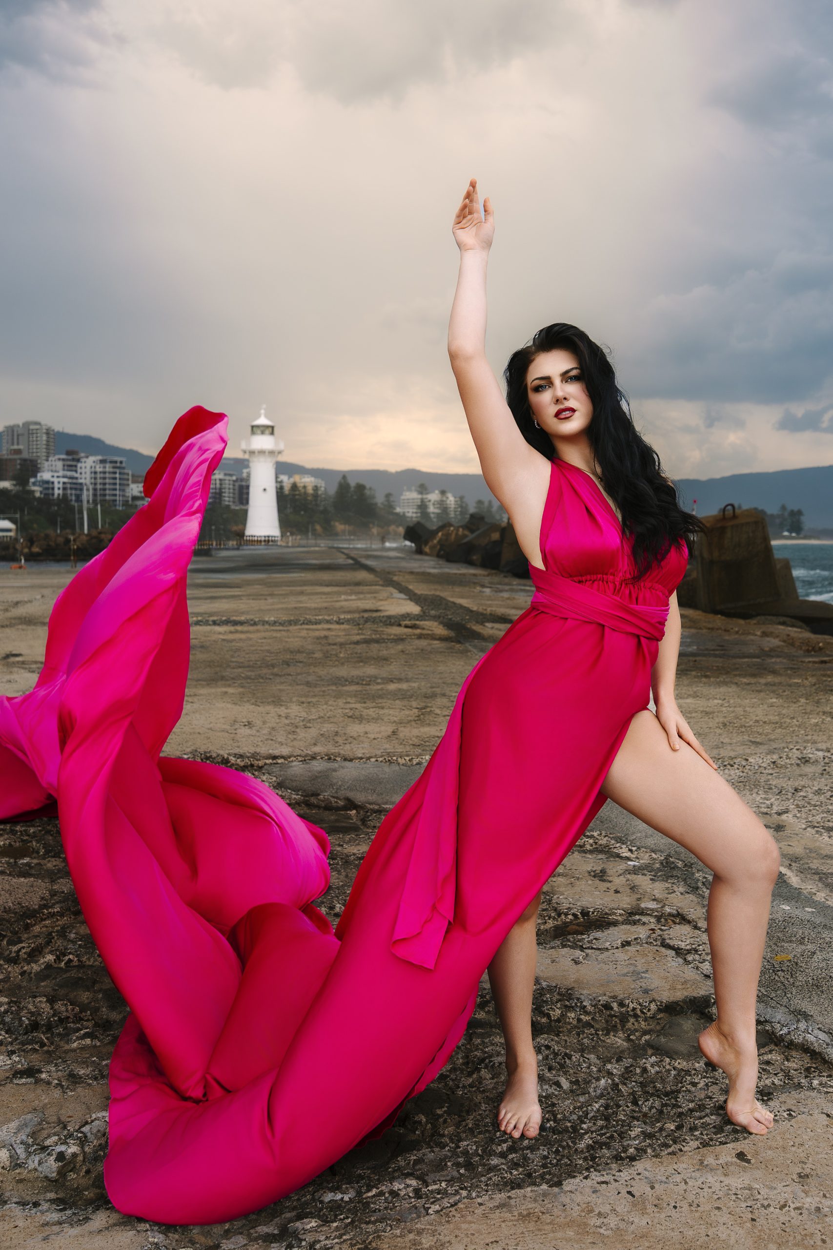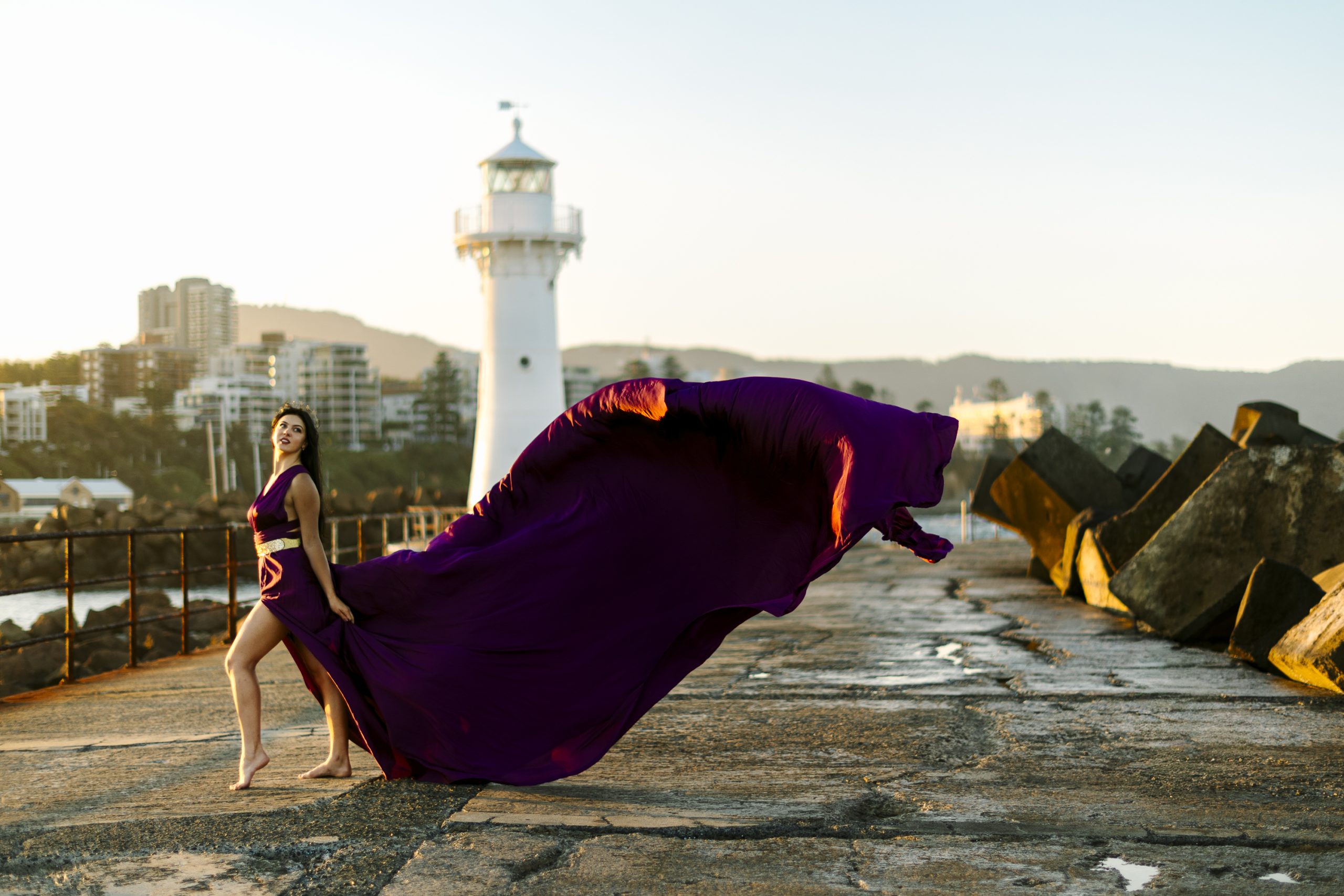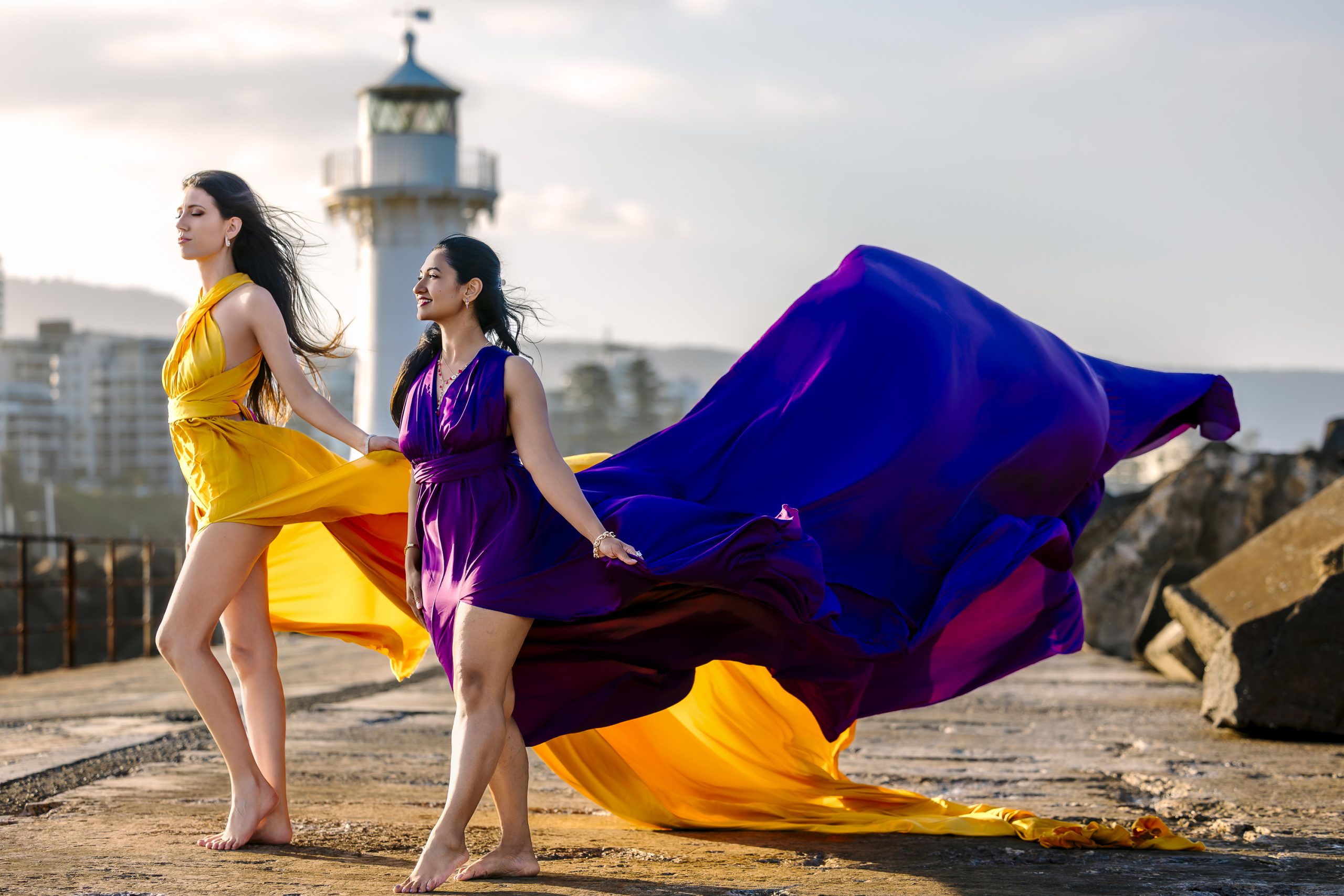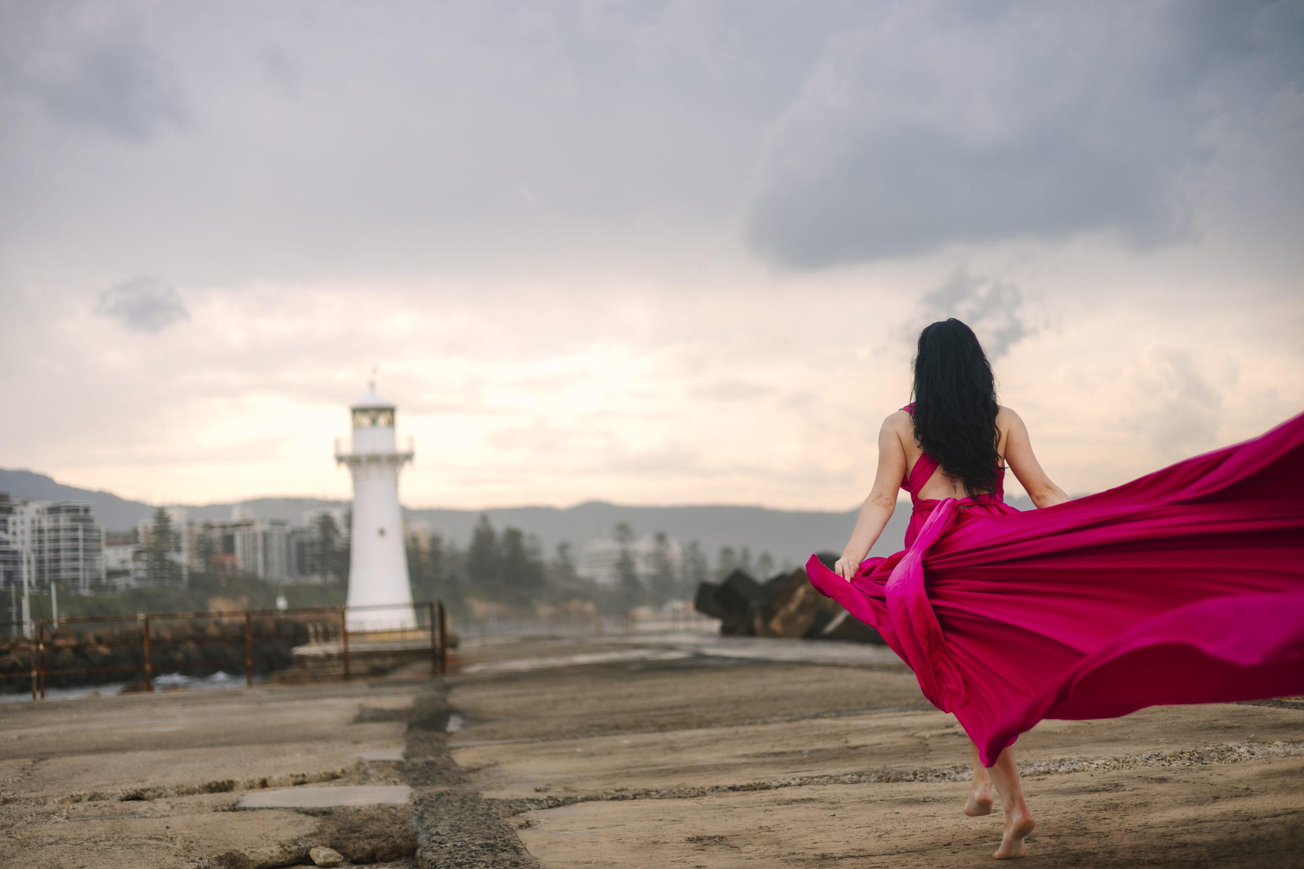 Experience the magic of a Flying Dress Photoshoot in Wollongong.